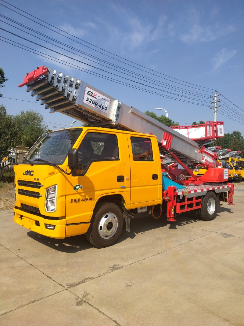 云梯搬家車。該車主要用于工程租賃、幕墻施工、樓頂